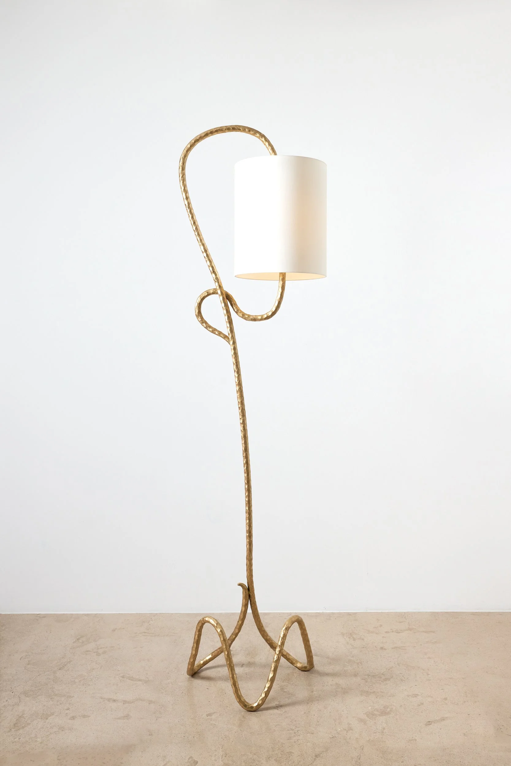 Mattia Bonetti Standard Lamp 'Bar I (petit), 2018 Gilded fer forgé, silk shade View details→